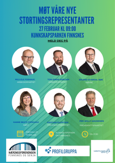 Nytt år og nye muligheter, velkommen til et nytt Profilgruppeår og første medlemsmøte i 2026. Etter stortingsvalget høsten 2025 består den nye Tromsbenken av AP, Frp, H og Rødt. Fredag 27. Februar kl.09.00-11.30 inviterer Næringsforeningen i Finnsnes og Senja, Profilgruppa og Sjømatklyngen våre medlemmer til et felles frokostmøte med den nye ...